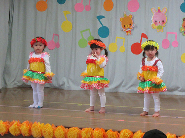 お遊戯会をしました。直前になってインフルエンザが流行したため、決して十分な練習ができたとは言えませんが、その中でできるだけ練習時間を確保していきました。子どもたちはこのステージに立てただけで十分です。そして緊張しながらも楽しそうに演技していました。