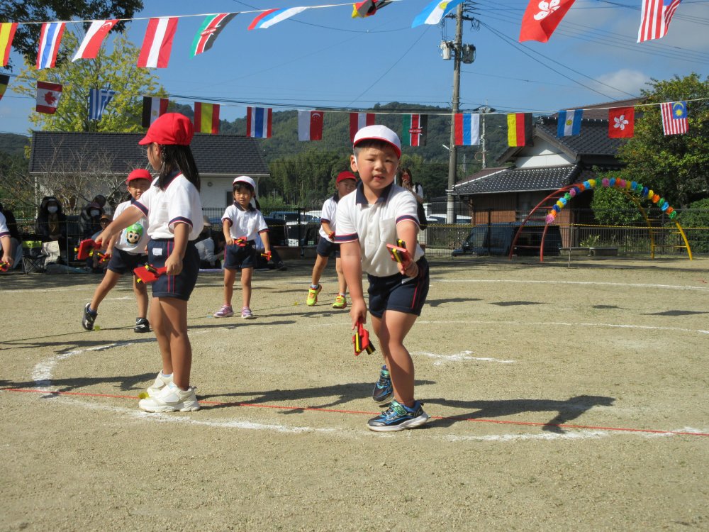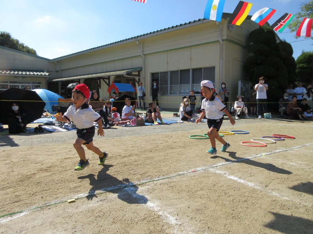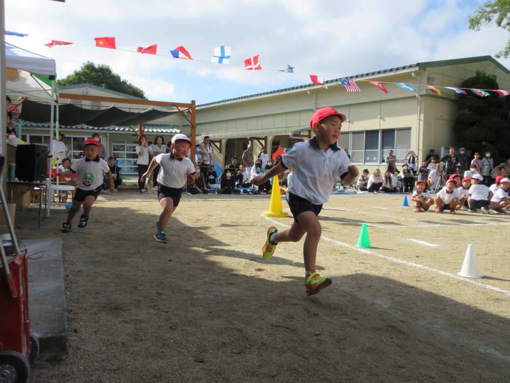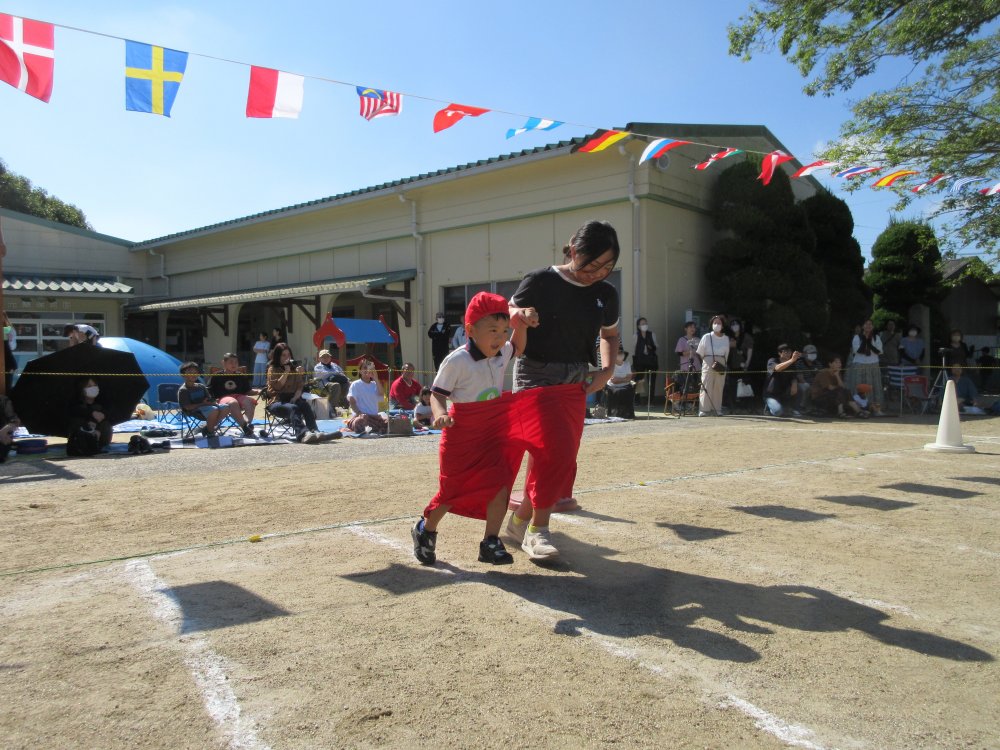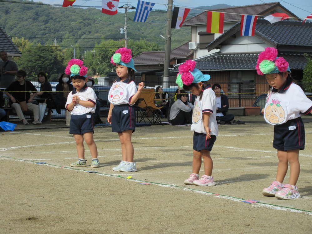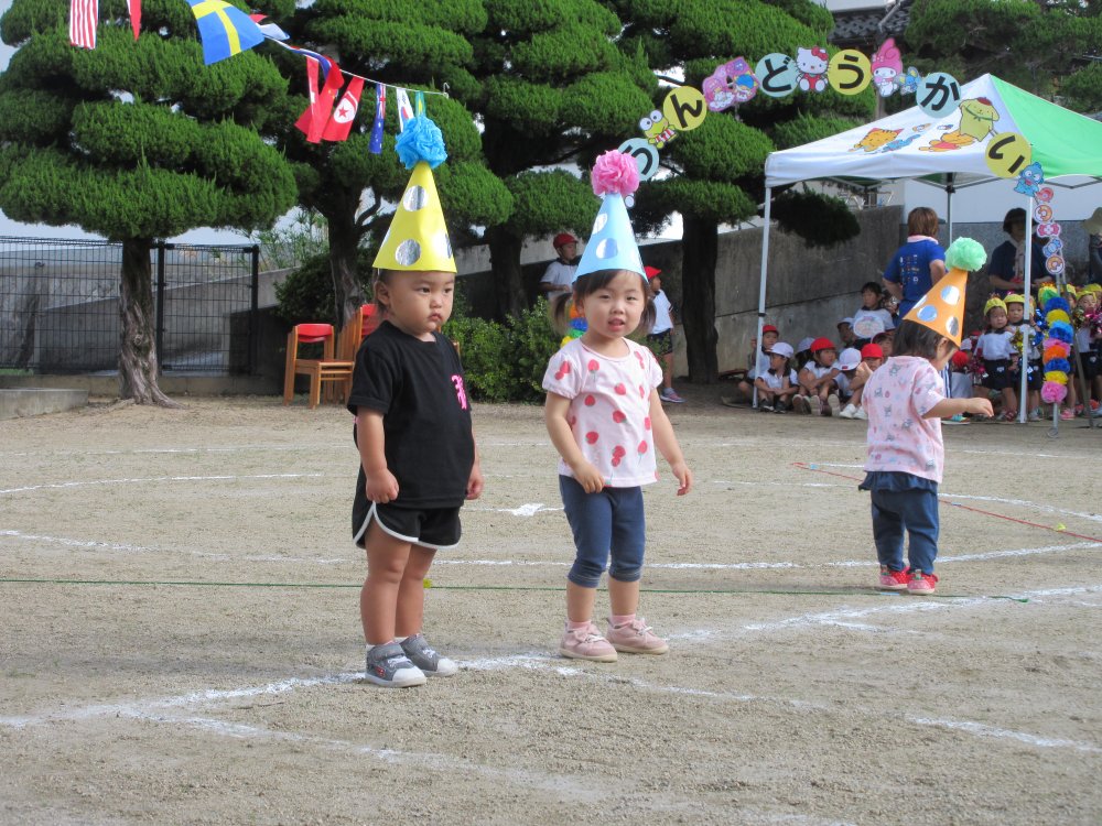 運動会をしました。少々暑くなりましたが、心配されていた雨も降らず、無事に園庭にて運動会を開催できました。今年の夏もとてもなく暑かったですが、みんな一生懸命練習してきました。小さいおともだちは誰も泣かずに、そこにいるだけでみんなのアイドル。そして大きいおともだちは失敗しても最後まで諦めることなく練習の成果を発揮していました。卒園児や保護者の競技も盛り上がって、良い運動会になりました。(保護者の皆様、御協力くださってありがとうございました。)