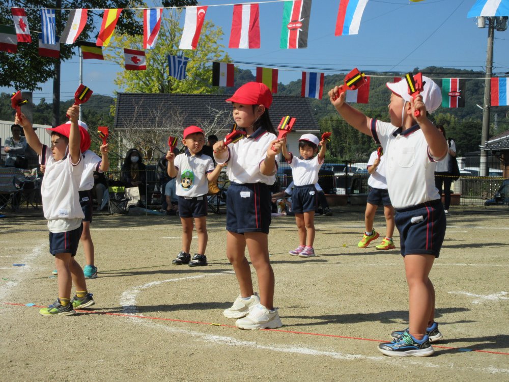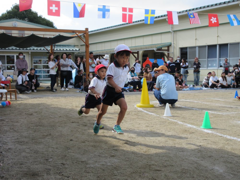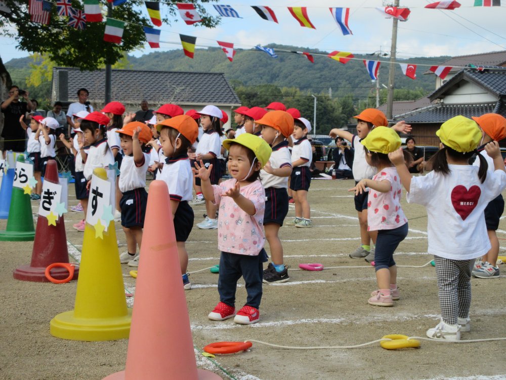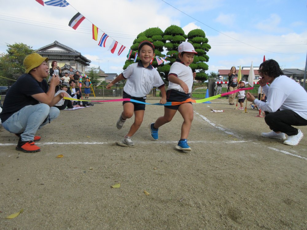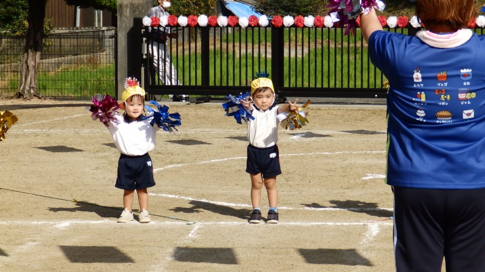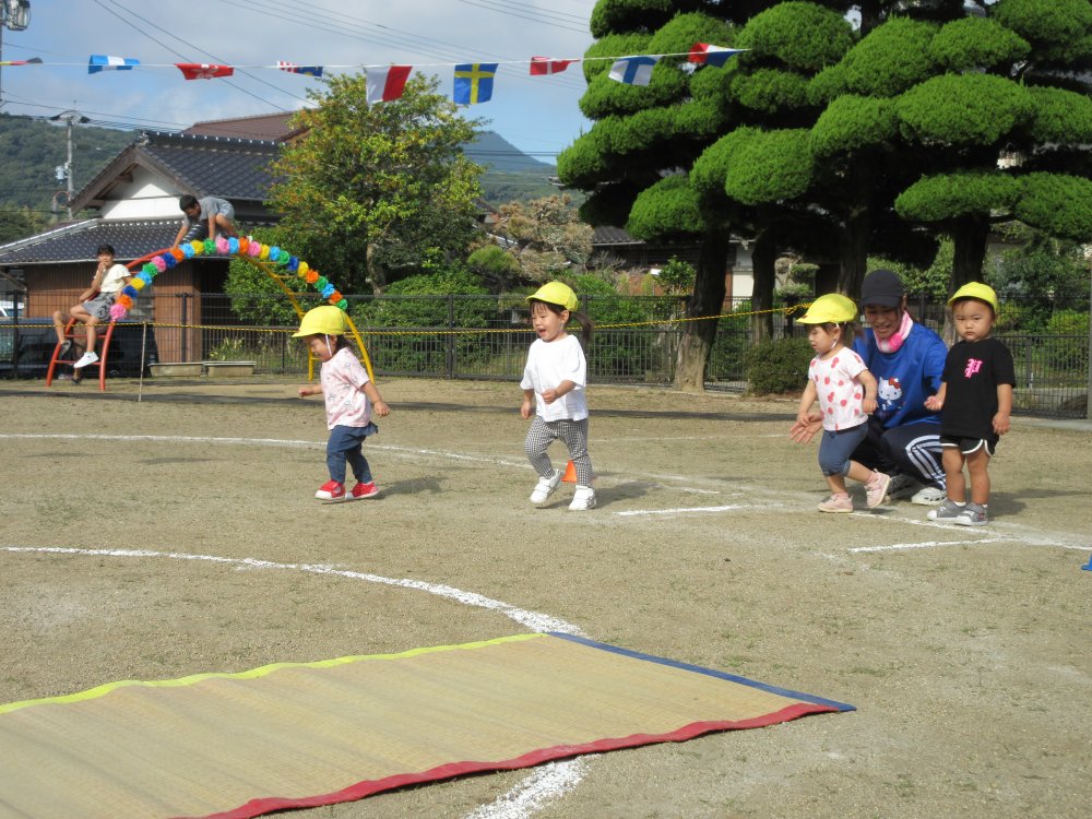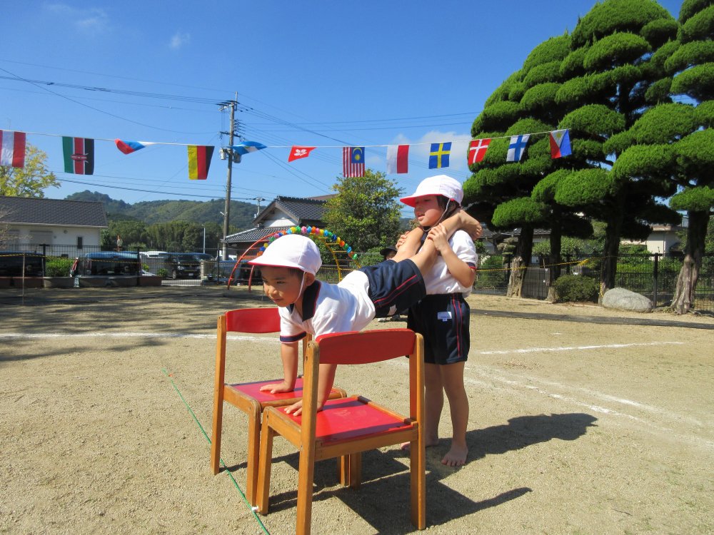 運動会をしました。少々暑くなりましたが、心配されていた雨も降らず、無事に園庭にて運動会を開催できました。今年の夏もとてもなく暑かったですが、みんな一生懸命練習してきました。小さいおともだちは誰も泣かずに、そこにいるだけでみんなのアイドル。そして大きいおともだちは失敗しても最後まで諦めることなく練習の成果を発揮していました。卒園児や保護者の競技も盛り上がって、良い運動会になりました。(保護者の皆様、御協力くださってありがとうございました。)