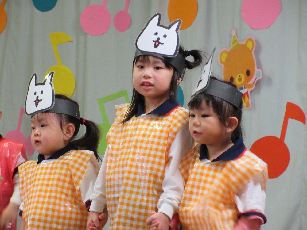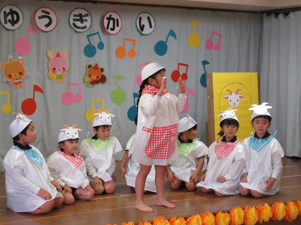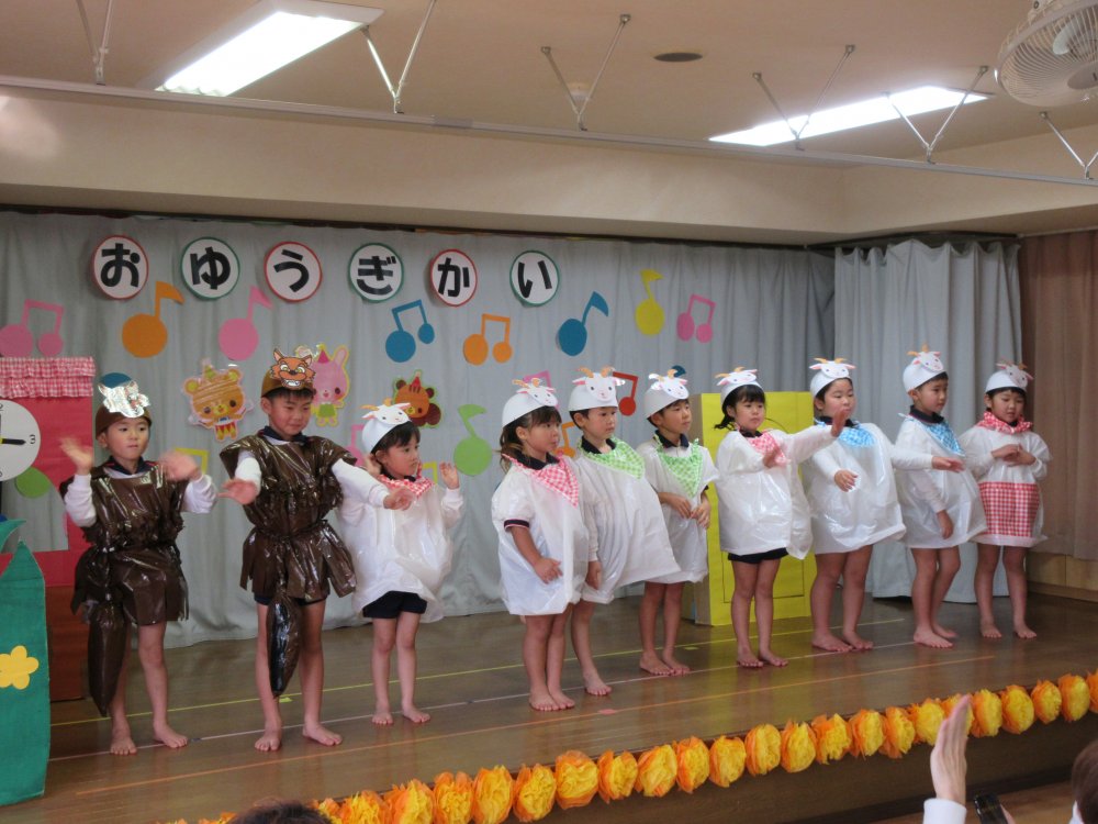 お遊戯会をしました。直前になってインフルエンザが流行したため、決して十分な練習ができたとは言えませんが、その中でできるだけ練習時間を確保していきました。子どもたちはこのステージに立てただけで十分です。そして緊張しながらも楽しそうに演技していました。