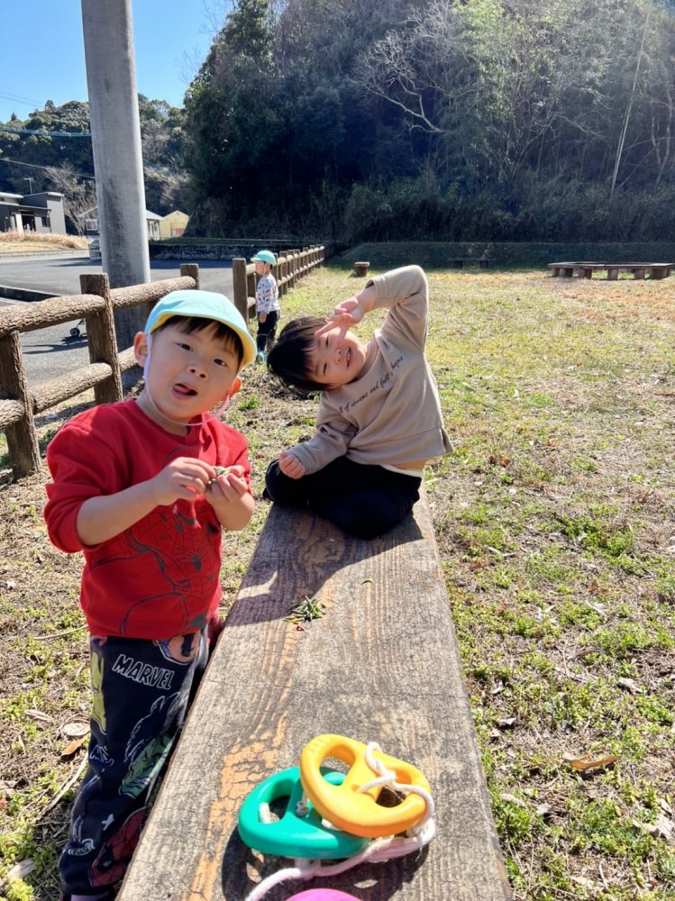 お別れ遠足に行きました。お天気にも恵まれて、ちょうどいい陽気で絶好の遠足日和でした。きりん組さんからりす組さんまで、保育園の近くの広場にみんなで行きました。きりん組さんと一緒に過ごせる時間がどんどん少なくなってきていますが、大きい子から小さいこまで入り混じりながら、遊び足りないくらいに思いきり遊びました。