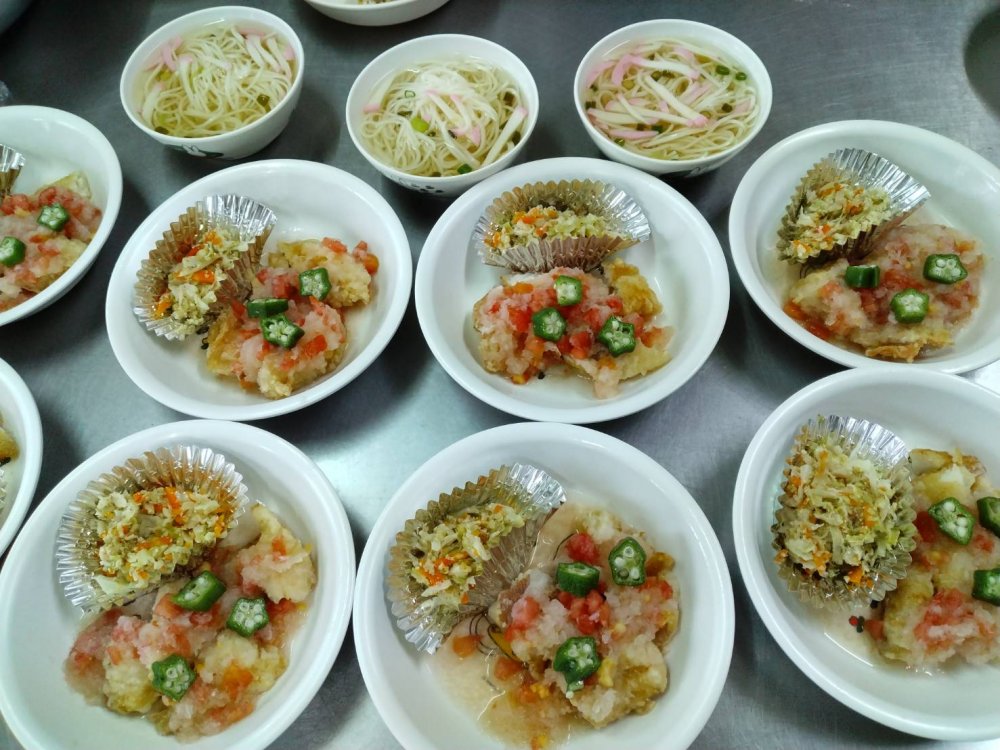 少し前のことですが・・・この日の給食の献立は白身魚の鹿の子かけとソーメン汁。オクラのネバネバと、トマトと大根おろしのさっぱりした味わいが美味しいです。夏の間だけのちょっと特別なメニューなのですが、夏メニューが給食に出てくるのは今年はこれで最後になりました。年長さんは保育園でこれを食べるのは最後になりますが、知ってか知らずか、喜んで食べていました。