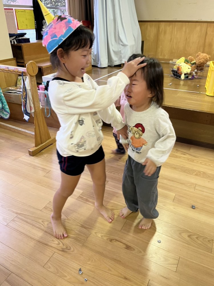 節分の豆まきをしました。子どもたちは何日も前からドキドキしていて、「あ~!もうその日はお休みしたい!」という子もちらほらいました。豆まきが始まる前から涙目になっている子がいたり、鬼さんが来ると逃げ回ったり、自分から鬼さんにお約束を宣言したり、きょうだいを守ったりと様々な子どもたちの様子が見られました。