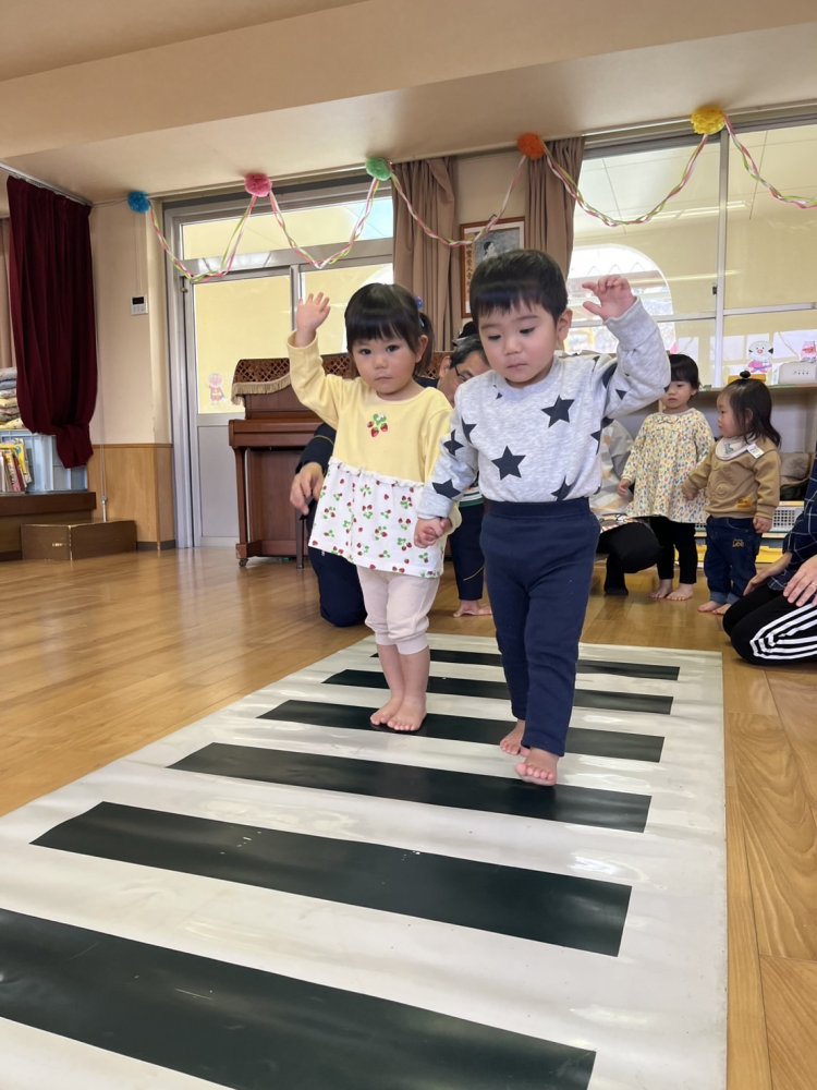 田川警察署の警察官と地域交通安全活動推進委員の方々がいらっしゃって、交通安全教室をしてくださいました。子どもたちはお巡りさんさんの話をとても集中して聞いていて、問題にもよく答えていました。横断歩道の渡り方や信号の見方を教えていただいて、実際に横断歩道を渡る練習をしました。