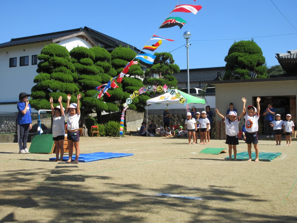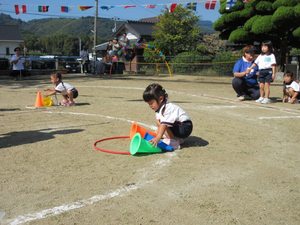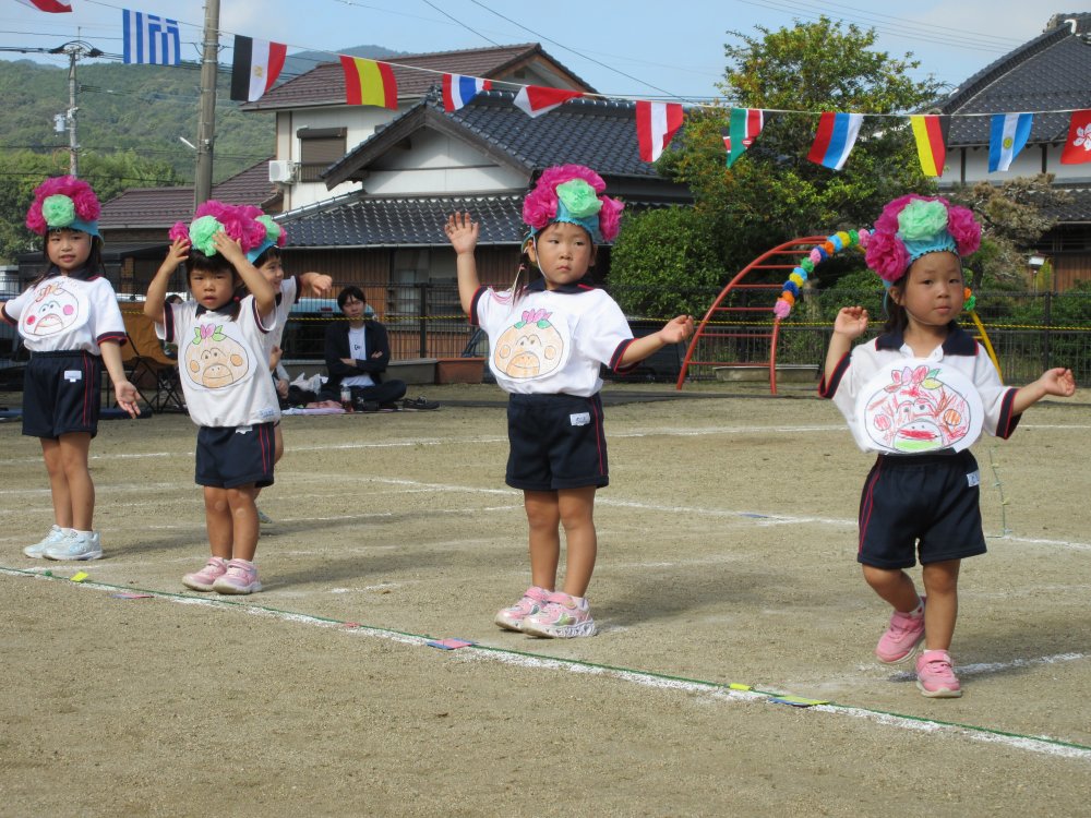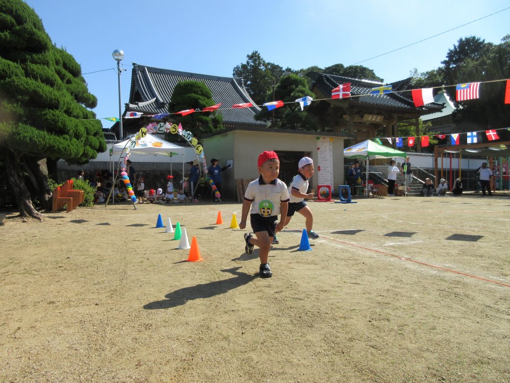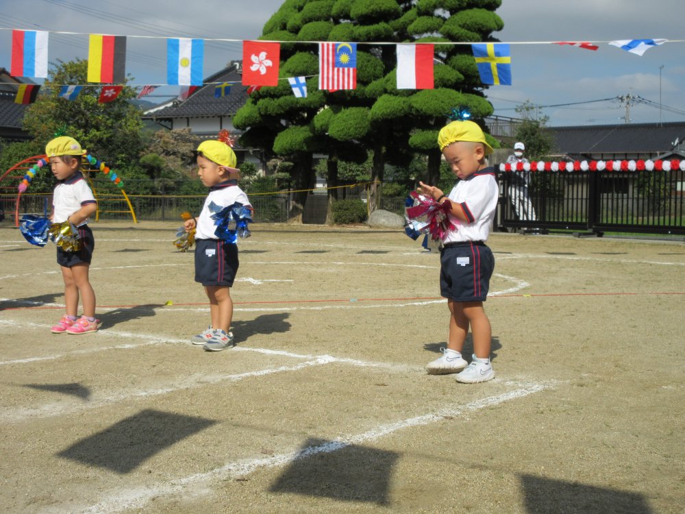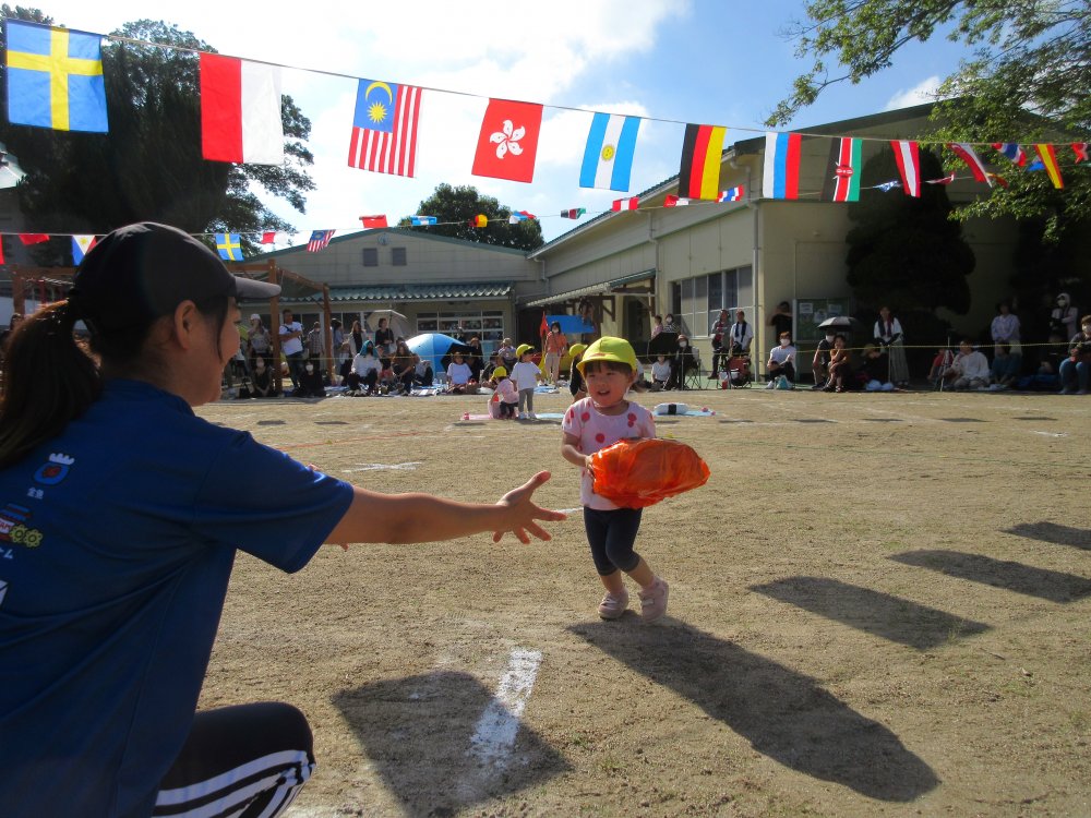 運動会をしました。少々暑くなりましたが、心配されていた雨も降らず、無事に園庭にて運動会を開催できました。今年の夏もとてもなく暑かったですが、みんな一生懸命練習してきました。小さいおともだちは誰も泣かずに、そこにいるだけでみんなのアイドル。そして大きいおともだちは失敗しても最後まで諦めることなく練習の成果を発揮していました。卒園児や保護者の競技も盛り上がって、良い運動会になりました。(保護者の皆様、御協力くださってありがとうございました。)