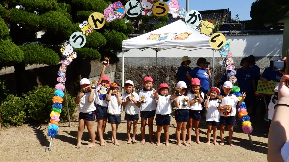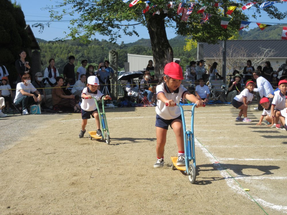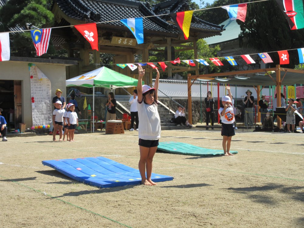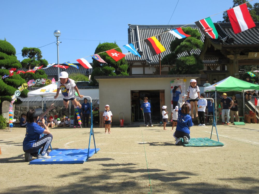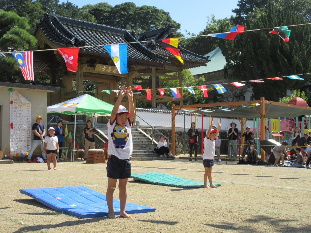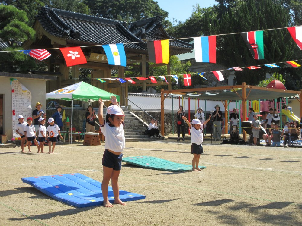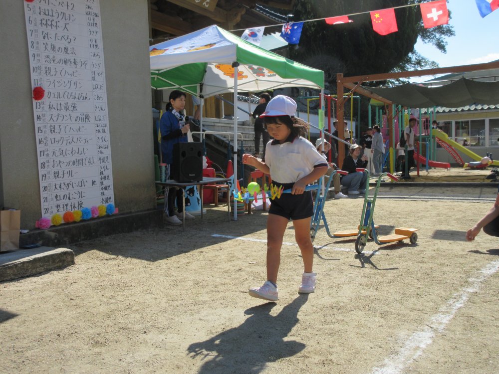 運動会をしました。少々暑くなりましたが、心配されていた雨も降らず、無事に園庭にて運動会を開催できました。今年の夏もとてもなく暑かったですが、みんな一生懸命練習してきました。小さいおともだちは誰も泣かずに、そこにいるだけでみんなのアイドル。そして大きいおともだちは失敗しても最後まで諦めることなく練習の成果を発揮していました。卒園児や保護者の競技も盛り上がって、良い運動会になりました。(保護者の皆様、御協力くださってありがとうございました。)